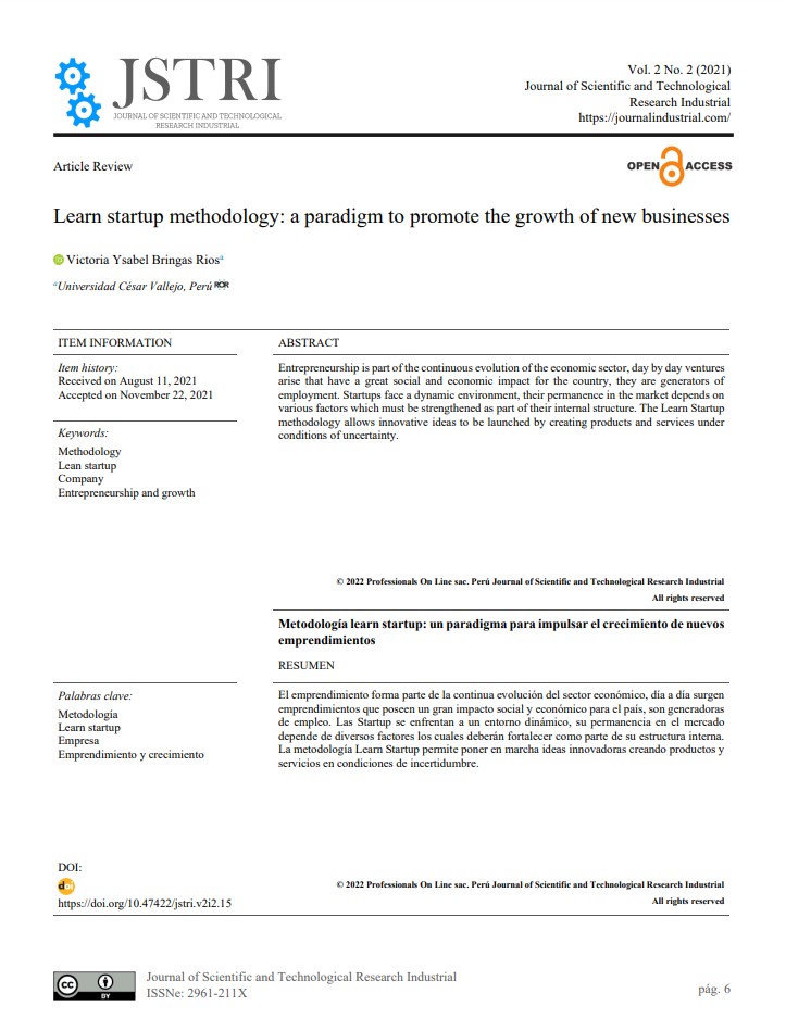 Learn startup methodology: a paradigm to promote the growth of new businesses. (2021). Journal of Scientific and Technological Research Industrial, 2(2), 06-09. https://doi.org/10.47422/jstri.v2i2.15